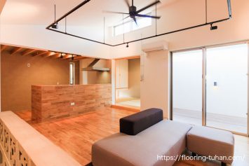 PVCフローリング(デコクリック)・ナチュラルティンバーカラーをご採用いただいた沖縄県の戸建住宅。白を基調とした全体的に明るいお部屋に仕上がっています。。