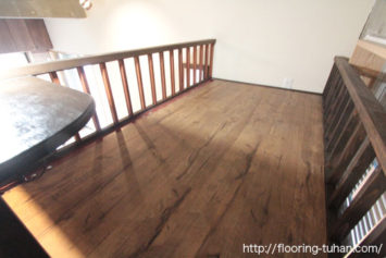 PVCフローリング(デコクリック)・ヘリテージヒッコリーカラーをアパートの別階で使用。表面の加工も本物の木材のような凹凸のある使用で施工業者様からも踏み心地がよく、とても満足されているフローリングです。