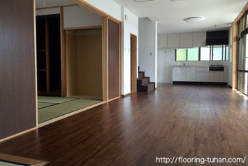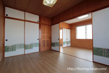 PVCフローリング(デコクリック)・ハニークラシックカラーを使用して、畳間6畳2室、キッチン6畳をリフォーム。ボンド不要置くタイプのフローリングなので手間がかからず、誰でも簡単に施工する事ができるフローリングです。