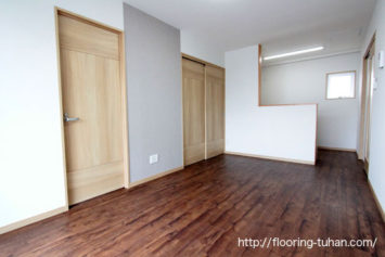 PVCフローリング(デコクリック)・ヘリテージヒッコリーカラーを賃貸物件(アパート)の床材として使用して頂きました。PVCフローリング(デコクリック)の耐久・耐水性、張替えが簡単という点に惹かれ建築会社の社長さまが今回も採用!