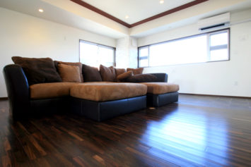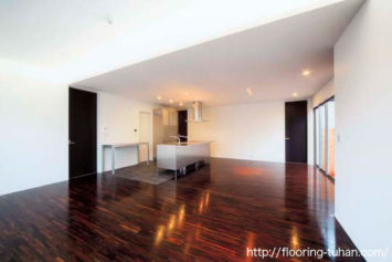 ローズウッド(紫檀)無垢フローリング90巾集成3Pタイプ塗装品を3階共同住宅の床材に使用。ローズウッドフローリングは落ち着いた雰囲気のカフェや店舗、また寝室や安らげる空間をイメージされる方に1番人気のある高級材フローリングです。