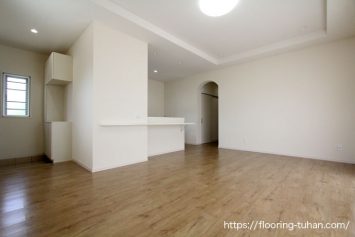 PVCフローリング(デコクリック)を使用していただいた沖縄県うるま市の住宅をご紹介。汚れや傷に強いデコクリックは、表面に滑り止めの加工がされているので、犬や猫などが滑って転んだりするのが心配という方にもおすすめのフローリングです。
