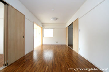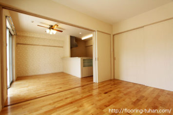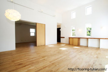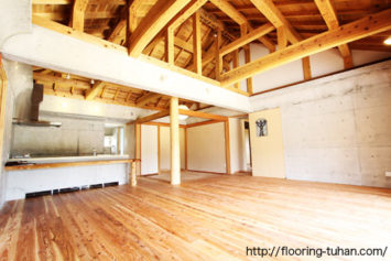 チーク無垢フローリング90巾ユニタイプ塗装品・スタンダードを共同住宅の床に使用。他に、施主様の住宅部分には高級材のローズウッド(紫檀/ソノクリン)材を、ベランダにはセランガンバツデッキ材も使用し、用途に合わせて様々なフローリングやデッキ材をご使用いただきました。