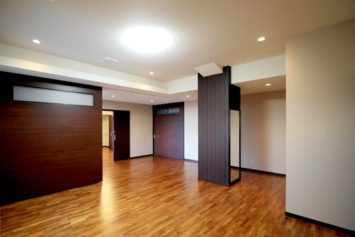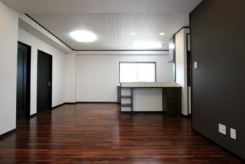 ローズウッド(紫檀)無垢フローリング90巾集成3Pタイプ塗装品を3階共同住宅の床材に使用。ローズウッドフローリングは落ち着いた雰囲気のカフェや店舗、また寝室や安らげる空間をイメージされる方に1番人気のある高級材フローリングです。