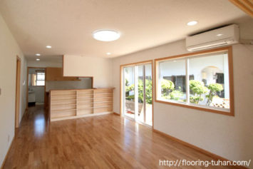 ローズウッド(紫檀)無垢フローリング90巾集成3Pタイプ塗装品を住宅リフォーム際の床材として使用。築60年余りの沖縄の伝統的な瓦屋根の家をリフォームし、床材をローズウッド(紫檀・ソノクリン)に張り替えたいとの事で採用して頂きました。