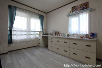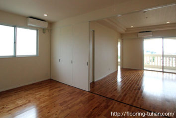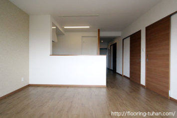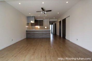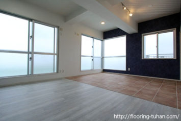 PVCフローリング(デコクリック)・ブリーチドパインカラーをマンションの床材として採用。今回はリフォームで、部屋全体のイメージを変えたいとの事でPVCフローリング(デコクリック)を採用していただきました。