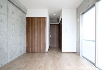 置くだけ簡単、PVCフローリング(デコクリック)のナチュラルティンバー色をアパート物件の床材として使用。使用して頂いた工務店さんは、貼りやすさと耐久性の強さ、ペット対応、土足でも可能という万能性が気にっているそうです。